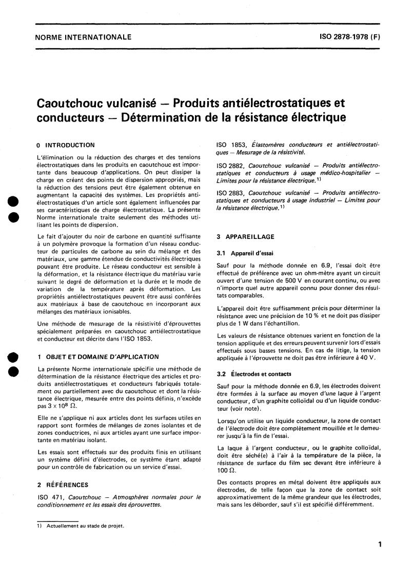 ISO 2878:1978 - Rubber, vulcanized — Antistatic and conductive products — Determination of electrical resistance Released:1/1/1978