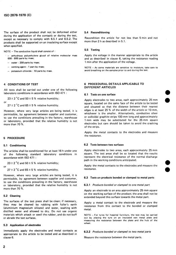 ISO 2878:1978 is a standard published by the International Organization for Standardization (ISO). Its full title is "Rubber, vulcanized — Antistatic and conductive products — Determination of electrical resistance". This standard covers: Rubber, vulcanized — Antistatic and conductive products — Determination of electrical resistance