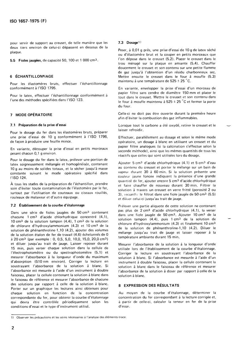 ISO 1657:1975 - Raw rubber and rubber latex -- Determination of iron content -- 1,10- Phenanthroline photometric method