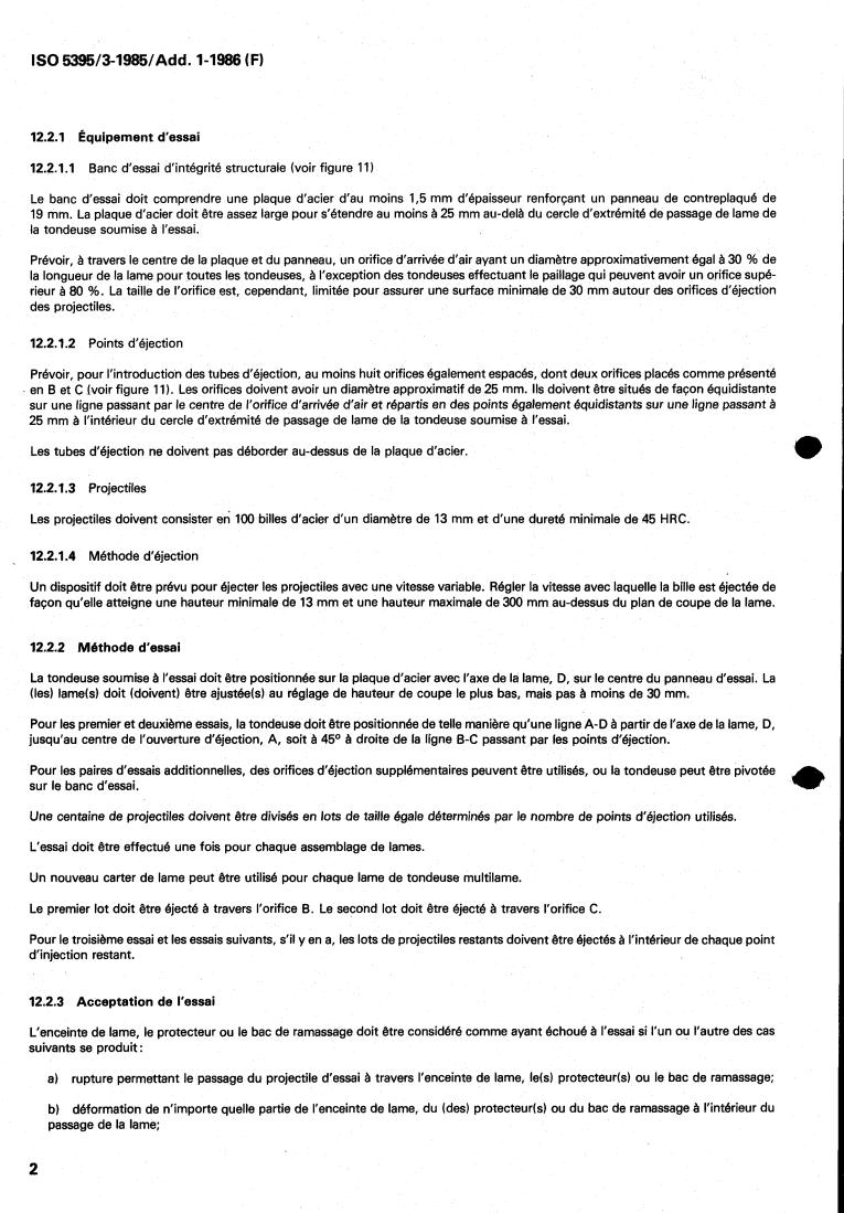 Le présent additif à I'ISO 5395/3-1985 constitue le paragraphe 12.2 de la norme et entraîne les modifications suivantes du texte :
