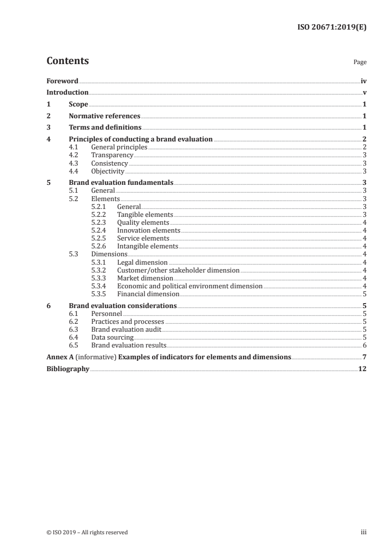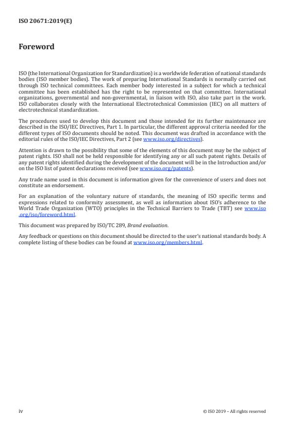 ISO 20671:2019 is a standard published by the International Organization for Standardization (ISO). Its full title is "Brand evaluation — Principles and fundamentals". This standard covers: This document specifies the fundamentals and principles for brand evaluation, including an integrated framework for brand evaluation containing necessary brand input elements, output dimensions and sample indicators. This document can be used in internal and external brand evaluation.