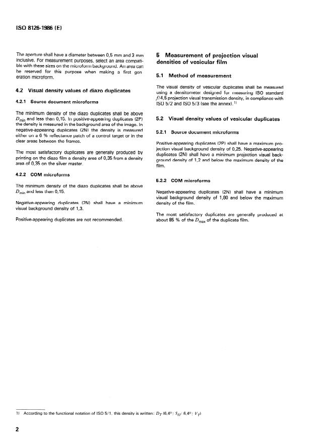 ISO 8126:1986 - Micrographics -- Diazo and vesicular films -- Visual density -- Specifications