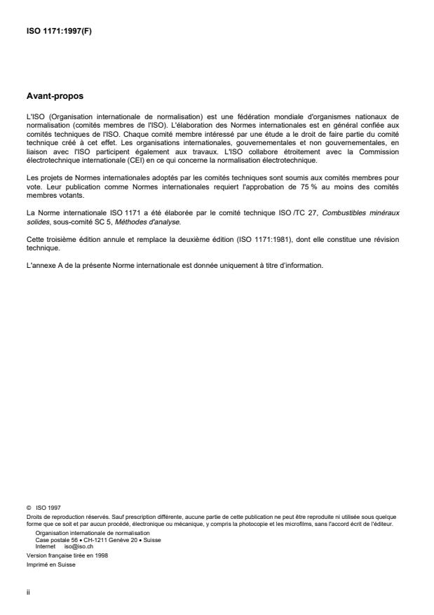 La Norme internationale ISO 1171 a été élaborée par le comité technique ISO /TC 27, Combustibles minéraux