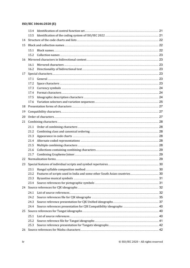 - Architecture and codespace: Defines structure, terminology, types of code points, and naming conventions for characters and control functions.