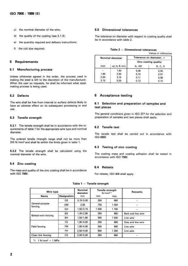 ISO 7900:1988 is a standard published by the International Organization for Standardization (ISO). Its full title is "Zinc-coated steel wire for fencing". This standard covers: Specifies requirements for drawn steel wire zinc-coated by the hot-dip process, and intended for use in general-purpose wire fencing, barbed-wire fencing, field fencing and chain link fencing. The properties specified are not intended to cover wire removed from a fabricated product.