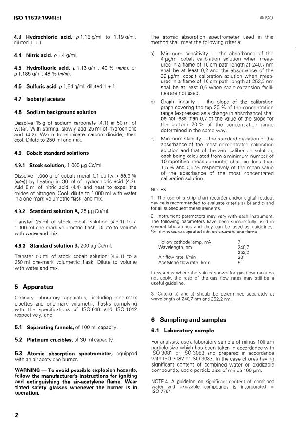 ISO 11533:2009 - Iron ores — Determination of cobalt — Flame atomic absorption spectrometric method - Effective Date