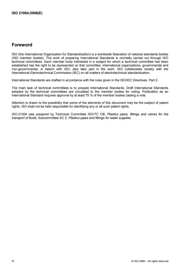 Keywords: ISO 21004:2006, multilayer pipes, thermoplastics, water supply, PE, PE-X, PP, PB, PVC-U, joints, long-term hydrostatic strength, piping system design.