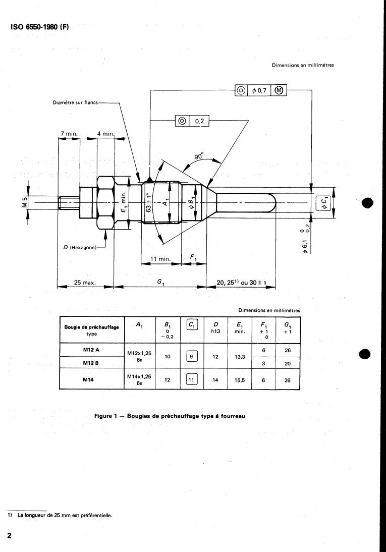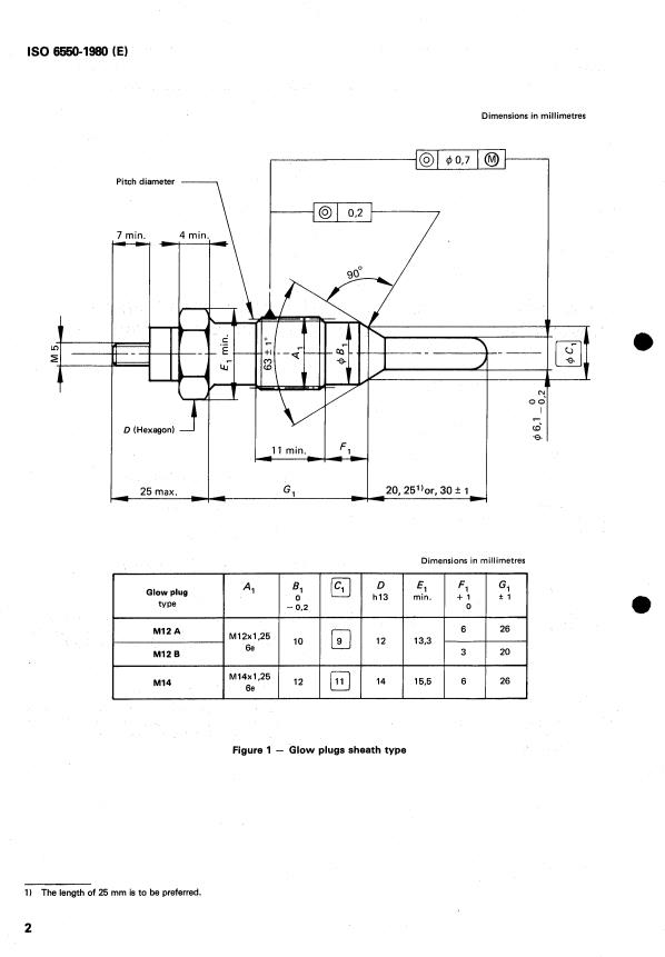 ISO 6550:1980 - Road vehicles -- Glow plugs M 12x1,25 and M 14x1,25 sheath type and cylinder head housing dimensions