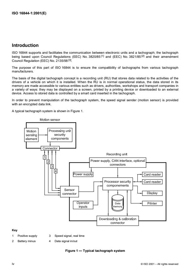 The purpose of this part of ISO 16844 is to ensure the compatibility of tachographs from various tachograph