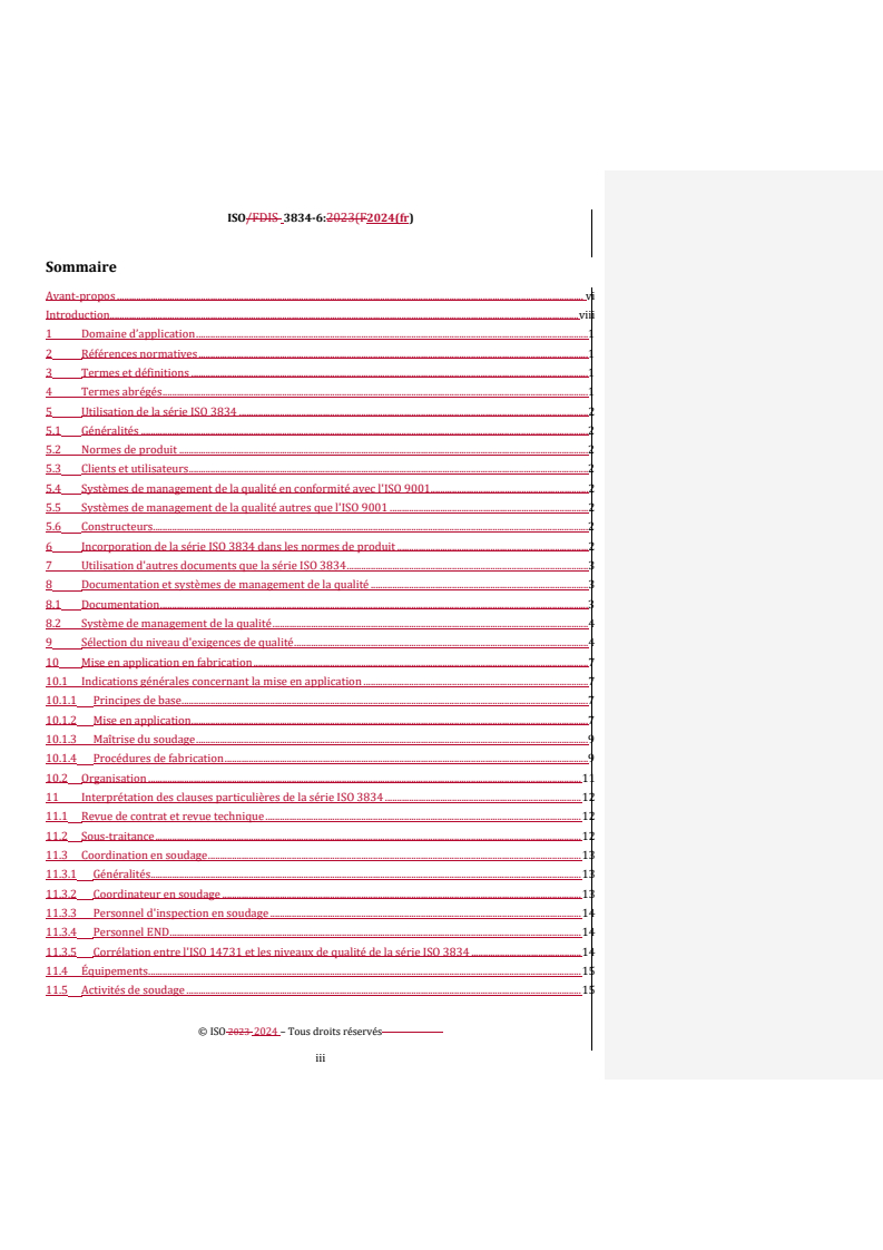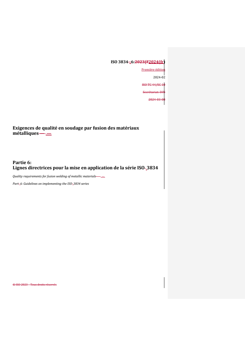 REDLINE ISO 3834-6:2024 - Exigences de qualité en soudage par fusion des matériaux métalliques — Partie 6: Lignes directrices pour la mise en application de la série ISO 3834 Released:3/28/2024