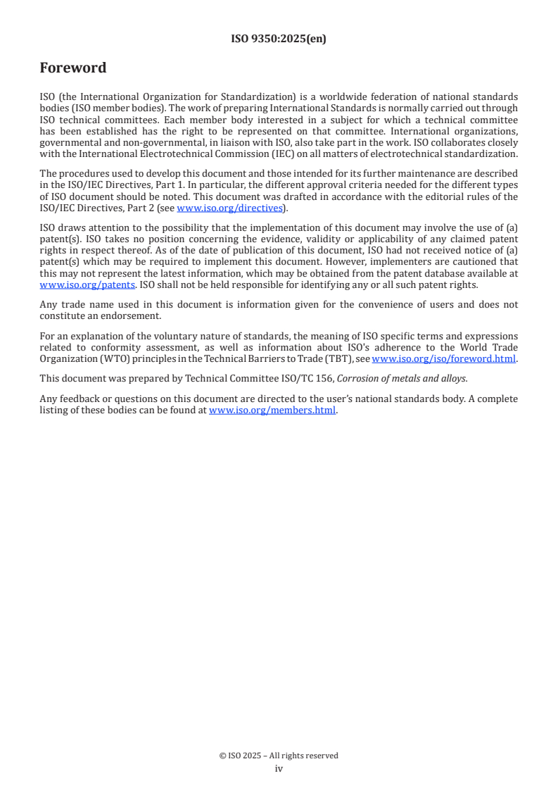 - Prepared by ISO/TC 156 (Corrosion of metals and alloys). While ISO 9350:2025 contains no normative references, users commonly consult other ISO corrosion and materials test standards and national regulations for complementary procedures, safety and conformity assessment.