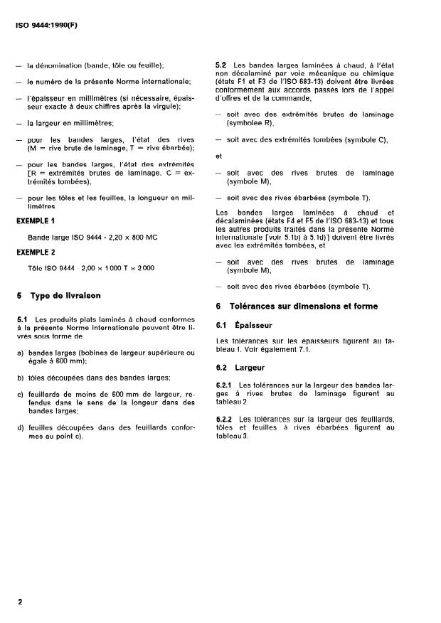 la dénomination (bande, tôie ou feuille); 5.2 Les bandes larges laminées à chaud, à l’état