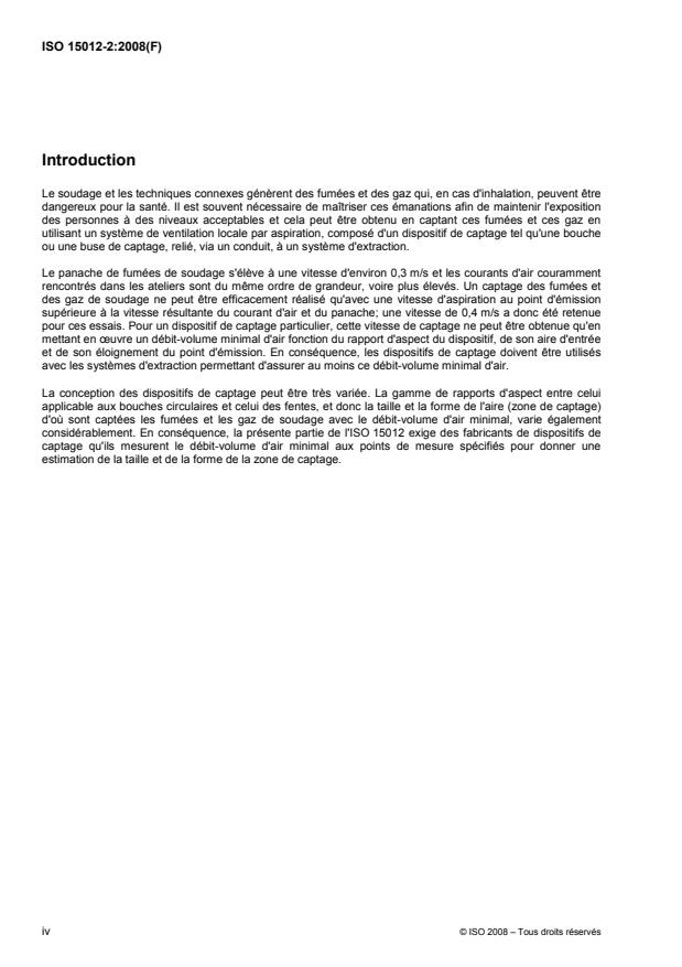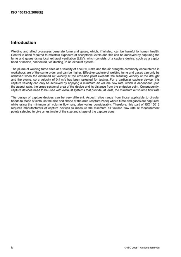 ISO 15012-2:2008 specifies a method for establishing the minimum air volume flow rate required for captor hoods and nozzles to effectively capture fume and gases from welding and allied processes. The method can be used with capture devices of any aspect ratio and cross-sectional area, but it is not applicable to on-gun extraction systems and down draught tables. ISO 15012-2:2008 also specifies the test data to be marked on the capture devices.