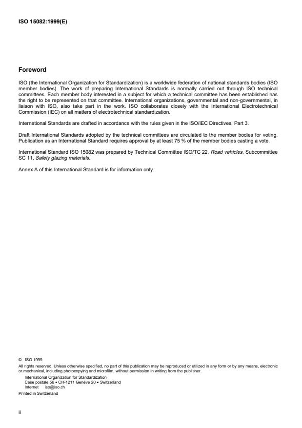 International Standard ISO 15082 was prepared by Technical Committee ISO/TC 22, Road vehicles, Subcommittee