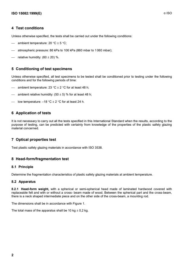 ISO 15082:1999 - Road vehicles -- Tests for rigid plastic safety glazing materials