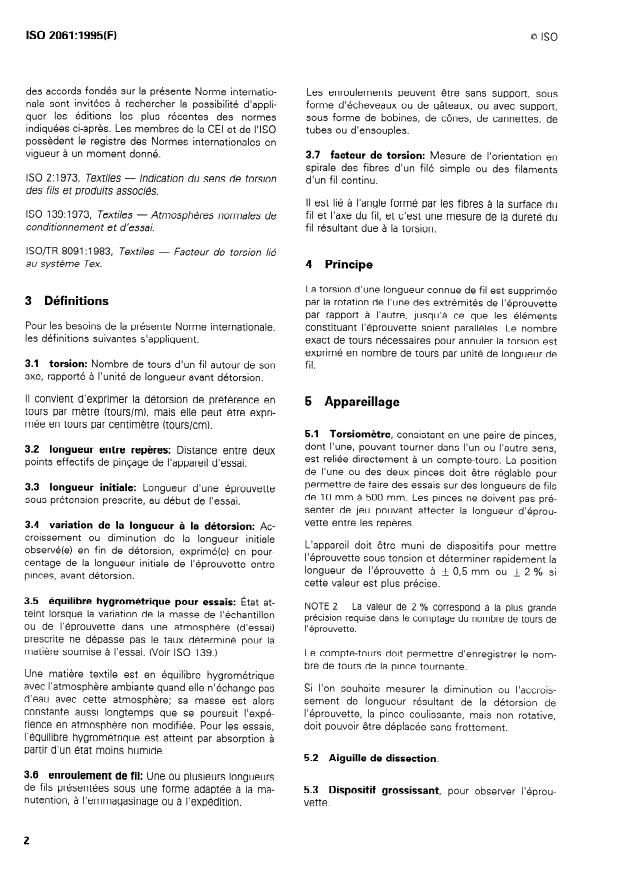 ISO 2061:1995 - Textiles -- Détermination de la torsion des fils -- Méthode par comptage direct