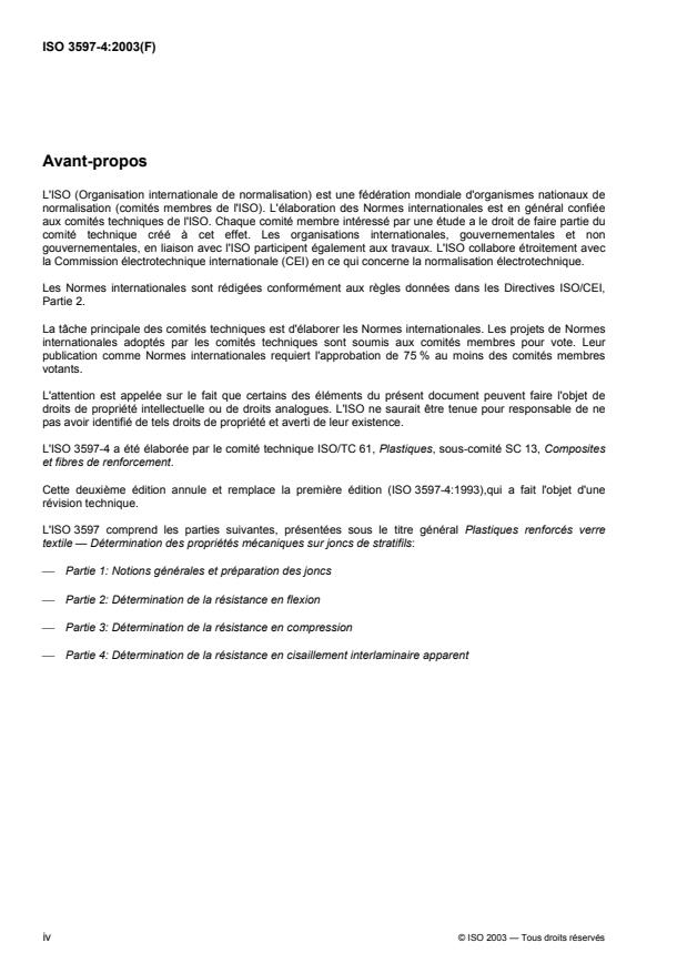 L'ISO 3597-4 a été élaborée par le comité technique ISO/TC 61, Plastiques, sous-comité SC 13, Composites