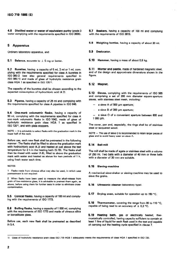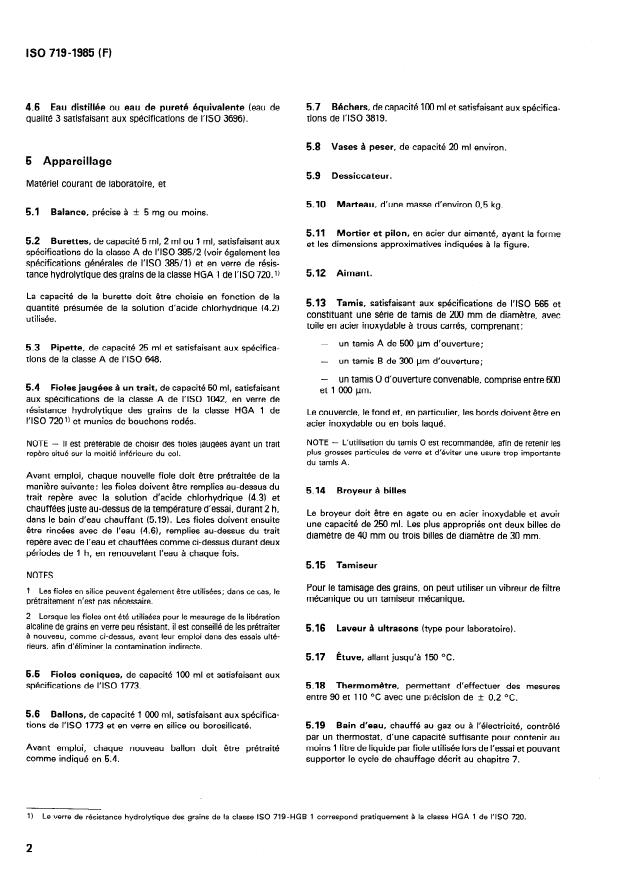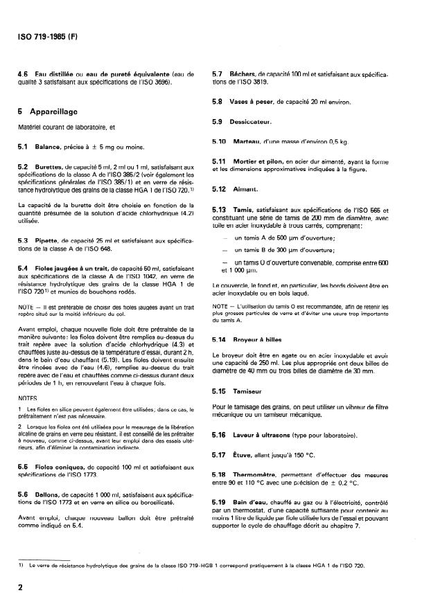 1) Le verre de résistance hydrolytique des grains de la classe ISO 719-HGB 1 correspond pratiquement à la classe HGA 1 de I’ISO 720.