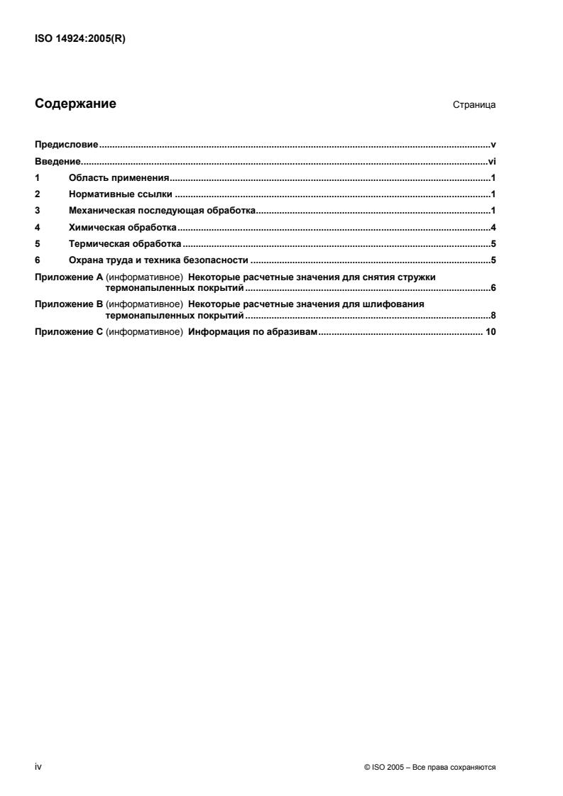 ISO 14924:2005 specifies the treatment and finishing of thermally sprayed coatings. It is applicable to different types of mechanical post treatment, chemical treatment, and thermal treatment, including chip cutting and other mechanical processes, to sealing, pickling and painting, and fusing, diffusion annealing and hot isostatic pressing.