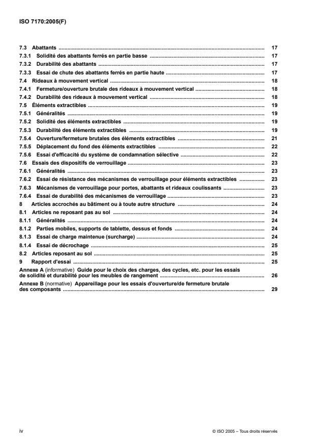 ISO 7170:2005 - Ameublement -- Éléments de rangement -- Détermination de la résistance et de la durabilité