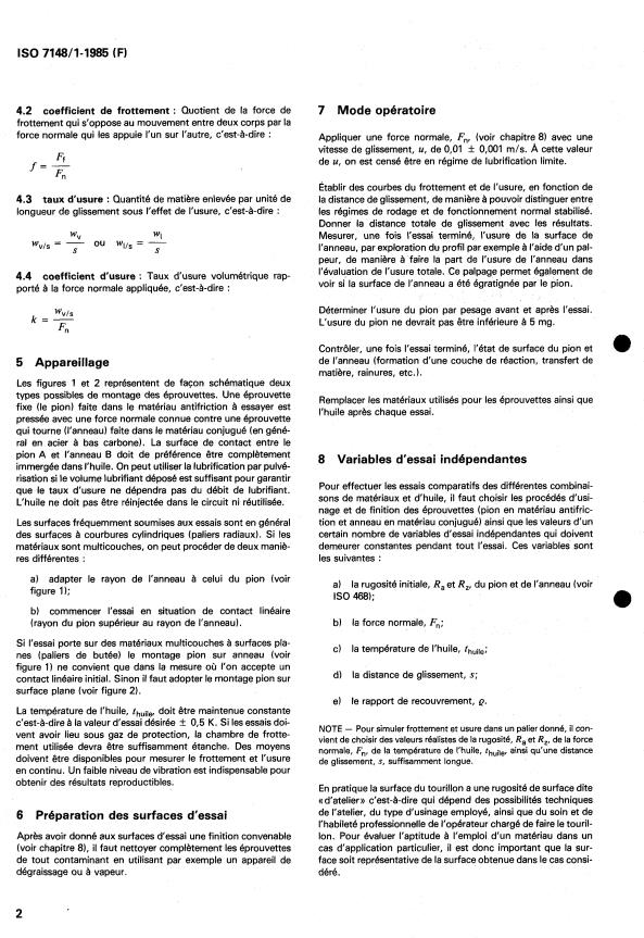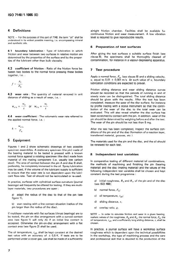 ISO 7148-1:1985 is a standard published by the International Organization for Standardization (ISO). Its full title is "Plain bearings — Testing of the tribological behaviour of bearing materials — Part 1: Testing of the friction and wear behaviour of bearing material/mating material/oil combinations under conditions of boundary lubrication". This standard covers: Plain bearings — Testing of the tribological behaviour of bearing materials — Part 1: Testing of the friction and wear behaviour of bearing material/mating material/oil combinations under conditions of boundary lubrication