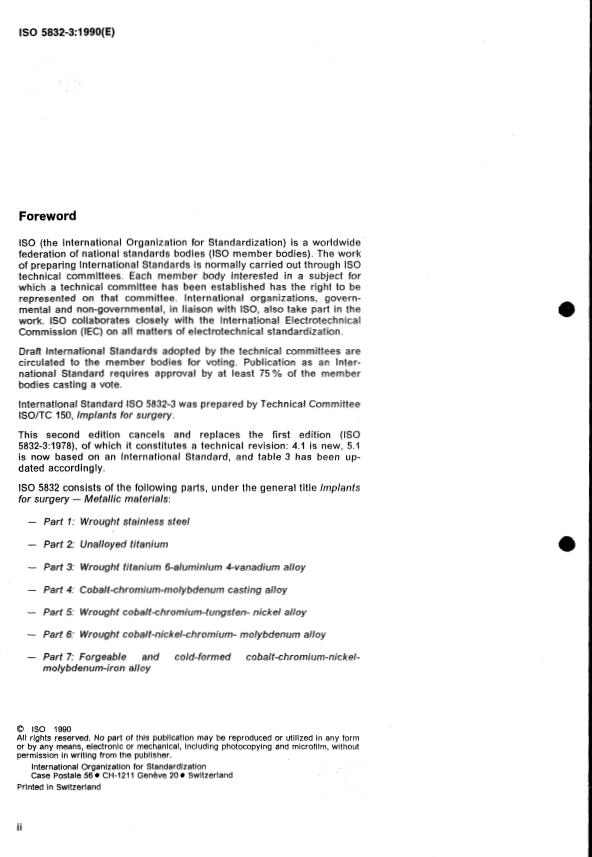 ISO 5832-3:1990 - Implants for surgery — Metallic materials — Part 3: Wrought titanium 6-aluminium 4-vanadium alloy Released:11/22/1990