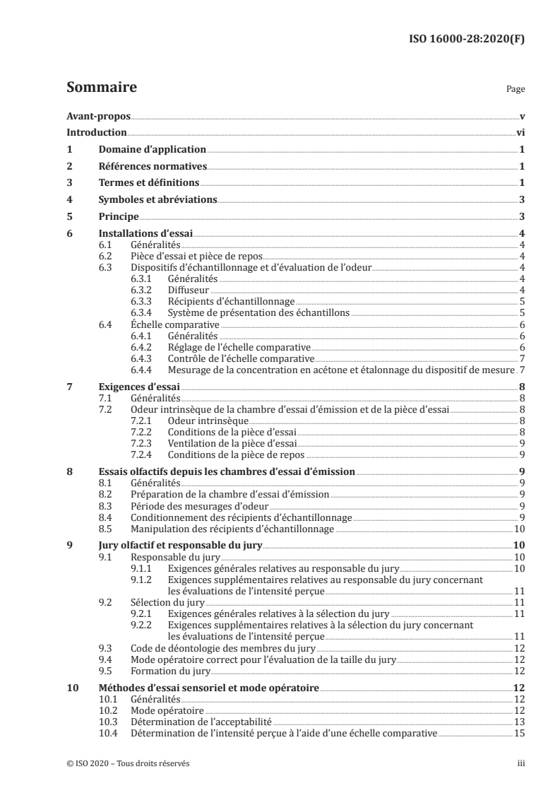 - Test facilities and equipment: Defines requirements for test room and recovery room setups, sampling devices (funnels, presentation systems, containers) and chamber background odour control.