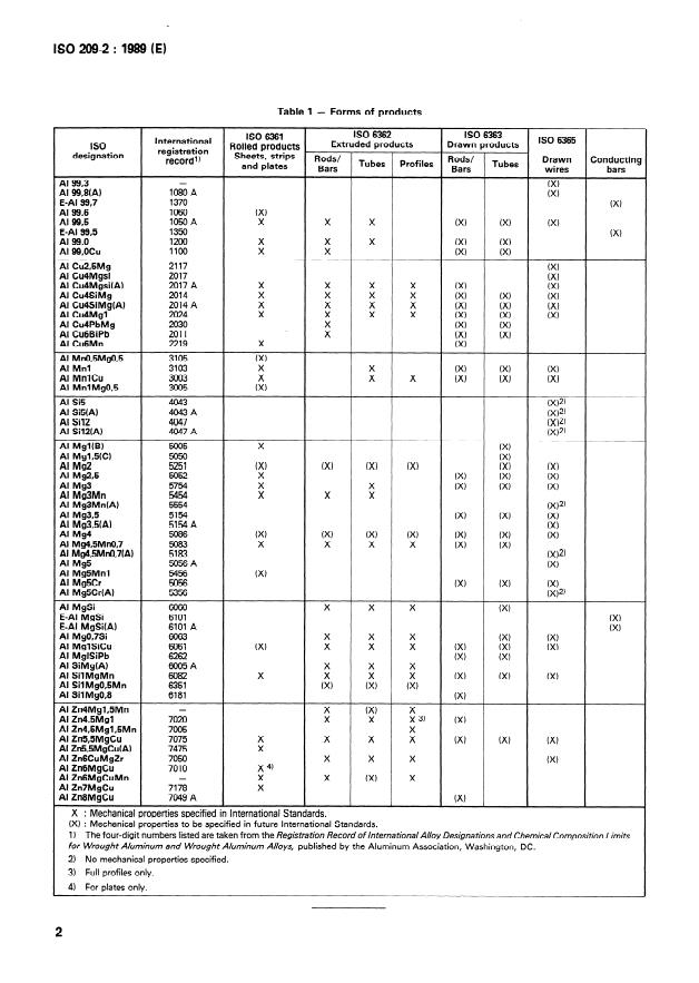 I SO 209- 1 : 1989, Wrought aluminium and aluminium alloys -