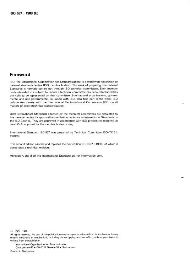 International Standard IS0 537 was prepared by Technical Committee ISO/TC 61,