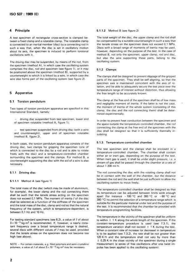 ISO 537:1989 is a standard published by the International Organization for Standardization (ISO). Its full title is "Plastics — Testing with the torsion pendulum". This standard covers: Plastics — Testing with the torsion pendulum
