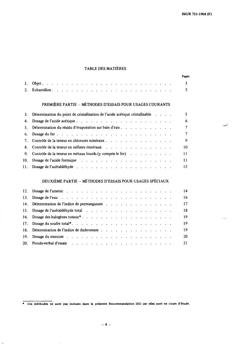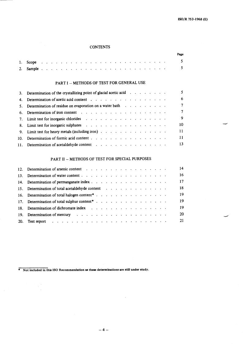 The IS0 Recommendation R 753, Acetic acid for indusmal use - Methods of test, was drawn