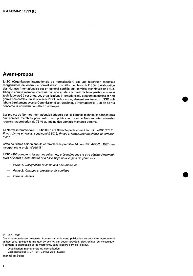 ISO 4250-2:1991 - Narrow and wide base off-road tyres and rims — Part 2: Loads and inflation pressures Released:3/28/1991