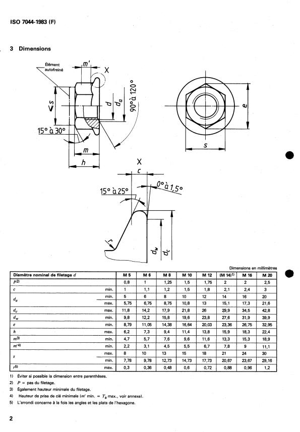 NOTE - Les dimensions des écrous sont conformes à celles données dans I'ISO 4161 plus le système de freinage