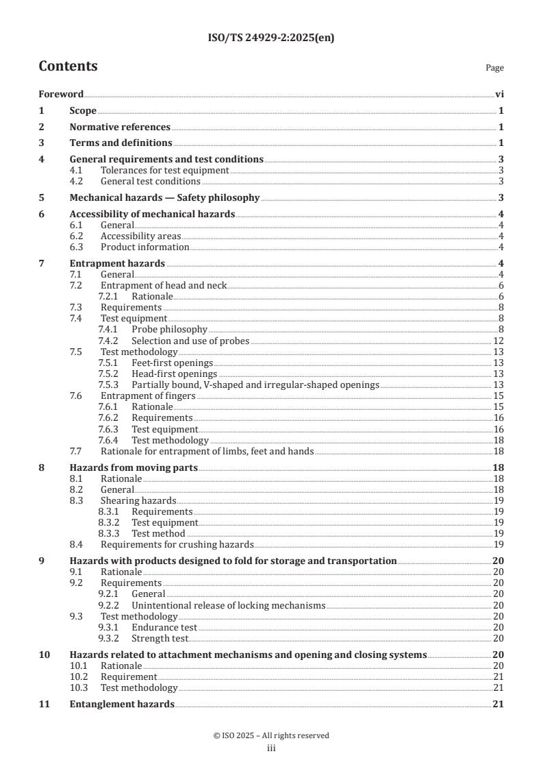 Keywords: ISO/TS 24929-2:2025, child care articles, mechanical hazards, entrapment, choking, suffocation, moving parts, test methods, safety standard.