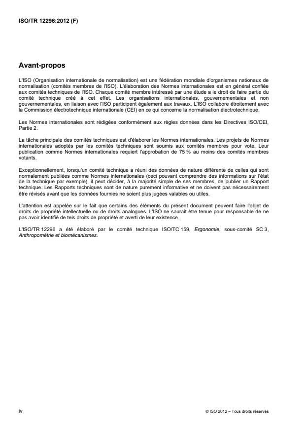 L'ISO/TR 12296:2012 fournit des lignes directives pour l'évaluation des problèmes et des risques associés à la manutention manuelle des patients dans le secteur de la santé, ainsi que pour l'identification et l'application de stratégies et de solutions ergonomiques à ces problèmes et ces risques. Il a principalement pour objectif d'améliorer les conditions de travail des soignants en diminuant le risque de surcharge biomécanique, ce qui limite donc les maladies et accidents de travail, ainsi que les coûts et l'absentéisme qui en résultent, et de justifier la qualité des soins aux patients, la sécurité, la dignité et la vie privée des patients par rapport à leurs besoins, y compris les soins et l'hygiène personnels spécifiques. Il est destiné à tous les utilisateurs (soignants et salariés) impliqués dans la manutention manuelle pour les soins et, en particulier, les cadres et les soignants, les agents de santé chargés de la sécurité et de la santé au travail, les fabricants d'appareils et accessoires fonctionnels et d'équipements, les superviseurs d'éducation et de formation et les concepteurs d'établissements de santé. Ses recommandations s'appliquent principalement au déplacement des personnes (adultes et enfants) pour la prestation des soins de santé dans des bâtiments et environnements construits ou adaptés à dessein. Certaines recommandations peuvent aussi s'appliquer à des domaines plus larges (par exemple les soins à domicile, les soins d'urgence, les soignants bénévoles, la manutention des cadavres). Les recommandations sur la manutention des patients prennent en compte l'organisation du travail, le type et le nombre de patients à manutentionner, les aides, les espaces où les patients sont manipulés, ainsi que l'éducation et les postures inconfortables des soignants, mais ne s'appliquent pas à la manipulation (déplacement, transfert, tirer/pousser) des objets ou des animaux. L'analyse commune des tâches d'une équipe journalière impliquant la manutention, le tirer/pousser des patients, ou la manutention et le transport d'objets n'est pas prise en compte.