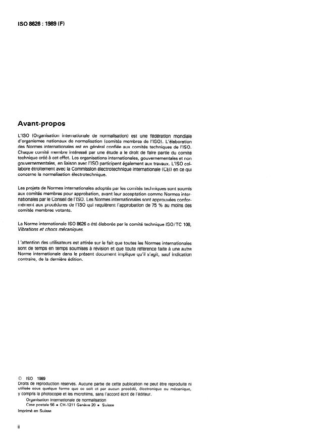 Keywords: ISO 8626:1989, servo‑hydraulic test equipment, hydraulic vibration generator, servovalve control device, hydraulic power system, vibration test specification, rated force, acceleration PSD, test masses.