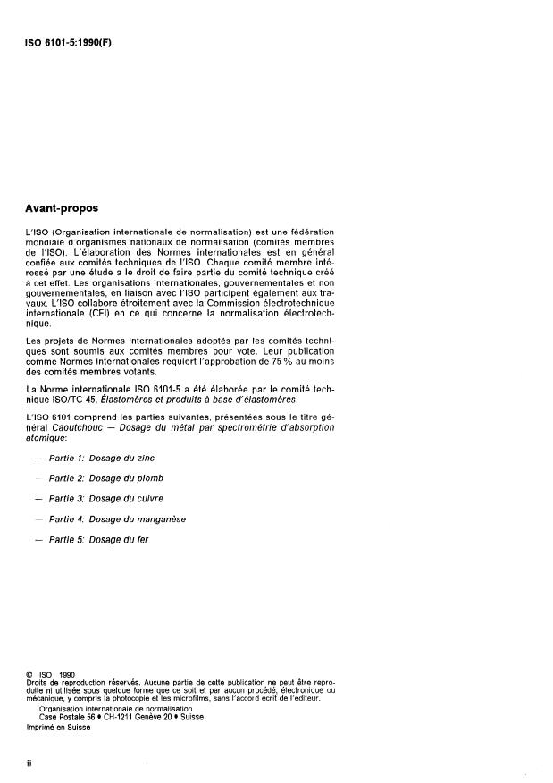 ISO 6101-5:1990 - Caoutchouc -- Dosage du métal par spectrométrie d'absorption atomique