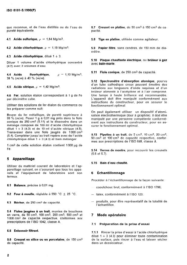 Caoutchouc — Dosage du métal par spectrométrie d'absorption atomique — Partie 5: Dosage du fer