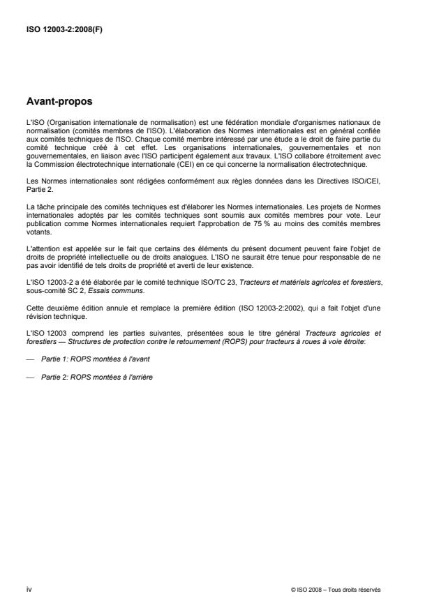 ISO 12003-2:2008 - Tracteurs agricoles et forestiers -- Structures de protection contre le retournement (ROPS) pour tracteurs a roues a voie étroite