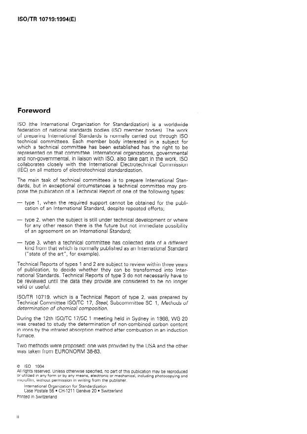 ISO/TR 10719:1994 - Steel and iron -- Determination of non-combined carbon content -- Infrared absorption method after combustion in an induction furnace