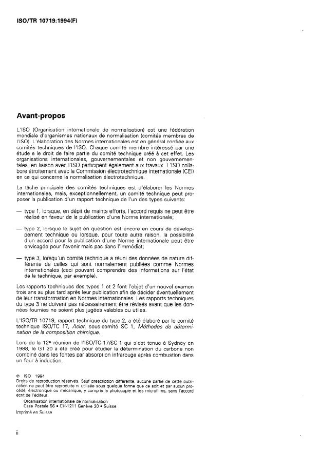 ISO/TR 10719:1994 is a technical report published by the International Organization for Standardization (ISO). Its full title is "Steel and iron — Determination of non-combined carbon content — Infrared absorption method after combustion in an induction furnace". This standard covers: Describes an infrared absorption method after combustion in an induction furnace for the determination of the non-combined carbon content in steel and iron. Applicable to non-combined carbon contents between 0,3 % (m/m) und 3,0 % (m/m).