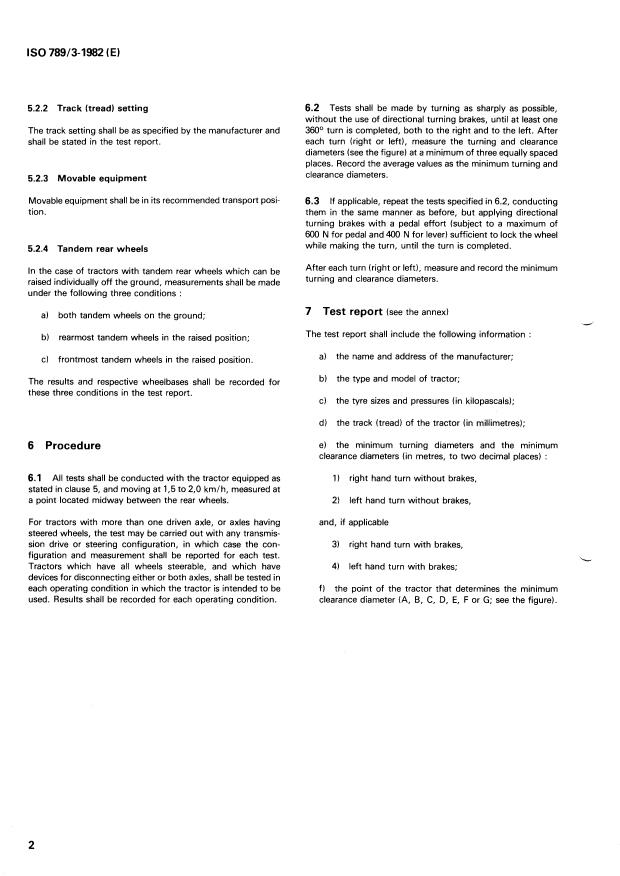 ISO 789-3:1993 - Agricultural tractors — Test procedures — Part 3: Turning and clearance diameters - Effective Date