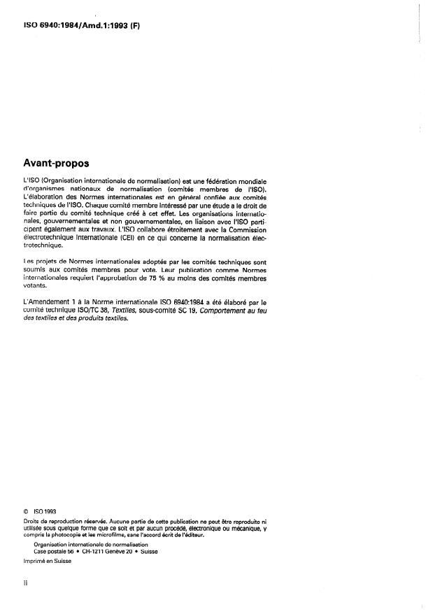 L’Amendement 1 à la Norme internationale ISO 6940:1984 a été élaboré par le