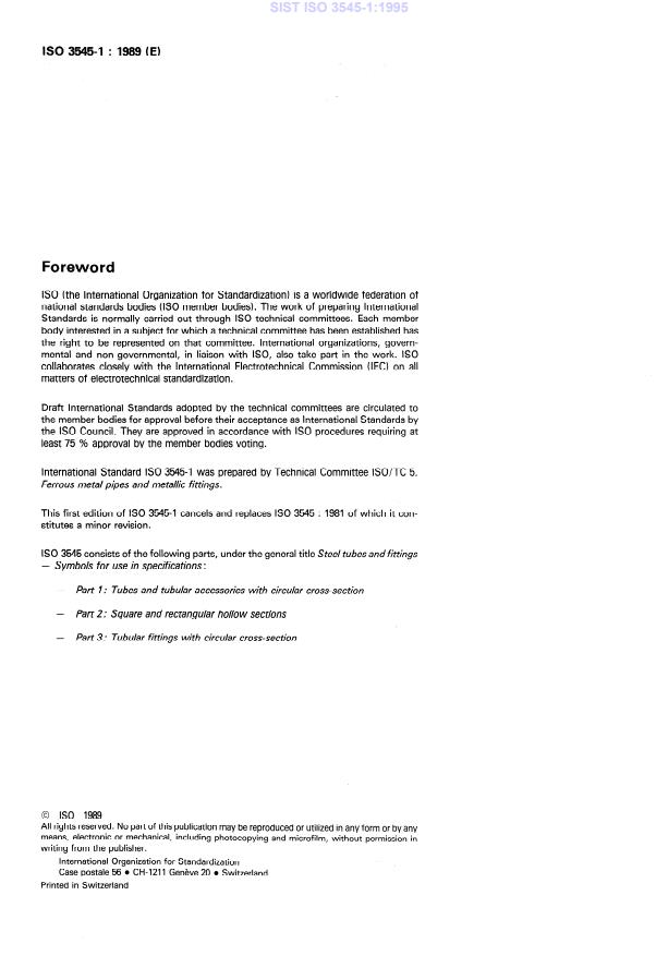 ISO 3545-1:1989 - Steel tubes and fittings — Symbols for use in specifications — Part 1: Tubes and tubular accessories with circular cross-section Released:11/30/1989