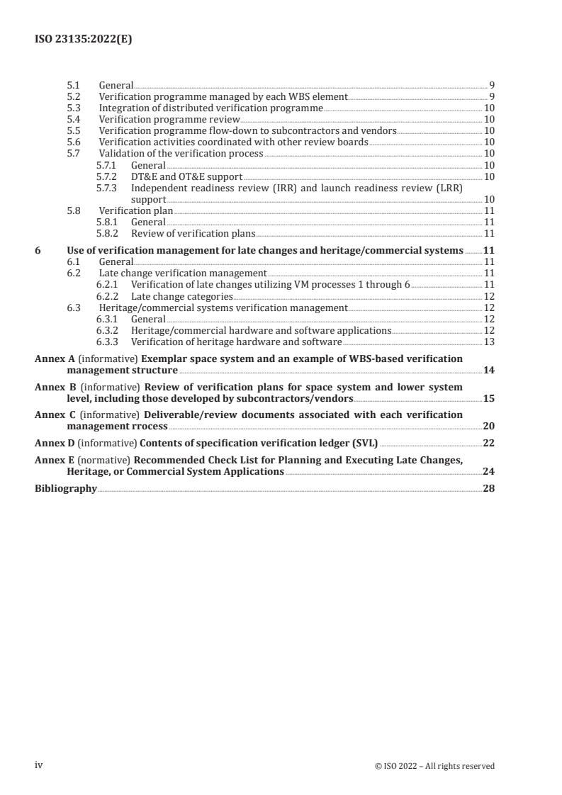 Keywords: ISO 23135:2022, space systems verification, verification programme management, VCRM, SVL, integration and test, acceptance review, distributed verification programme.