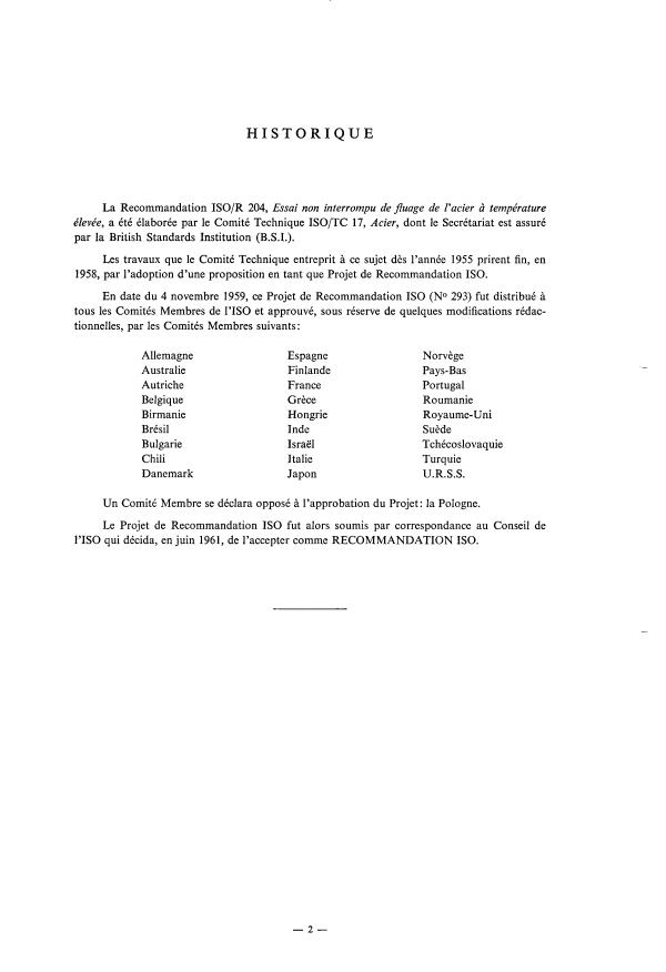 ISO/R 204:1961 - Essai non interrompu de fluage de l'acier a température élevée