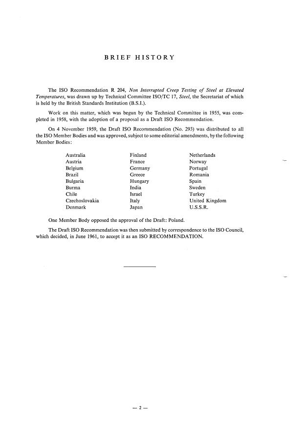 ISO/R 204:1961 - Non-interrupted creep testing of steel at elevated temperatures