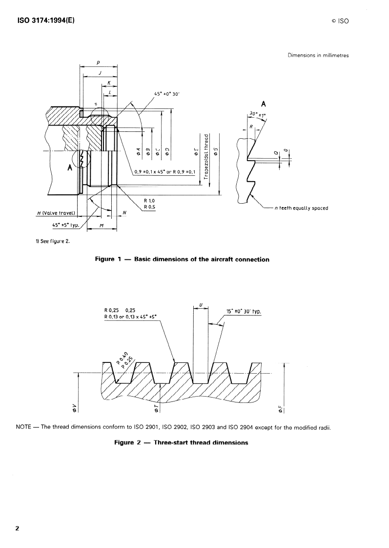Keywords: ISO 3174, aircraft hydraulic connections, threaded test fittings, three‑start thread, hydraulic test points, aerospace fluid systems, ground appliances, hydraulic pressure testing.