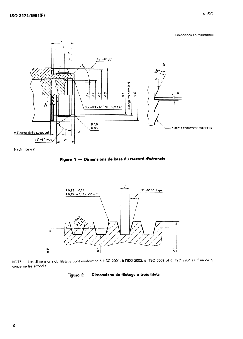 Les dimensions du filetage sont conformes à I’ISO 2901, à I’ISO 2902, à I’ISO 2903 et à I’ISO 2904 sauf en ce qui