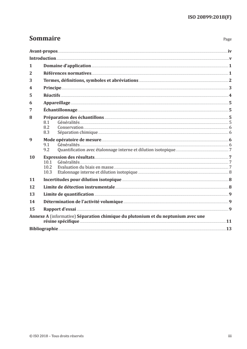 ISO 20899:2018 - Qualité de l'eau -- Plutonium et neptunium -- Méthode d'essai par ICP-MS